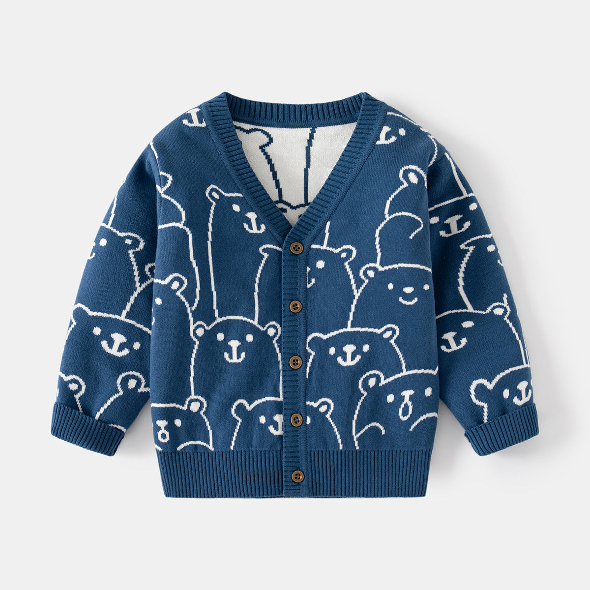 [513665] - Atasan Jaket Cardigan Lengan Panjang Anak Laki-Laki - Motif Round Bear