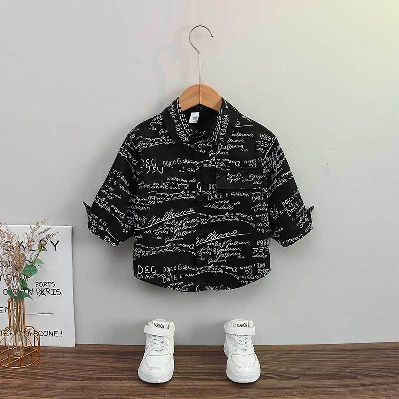 [383204] - Baju Atasan Kemeja Lengan Panjang Anak Laki-Laki Cowok - Motif Lettered Collar - BABYHOKI STORE