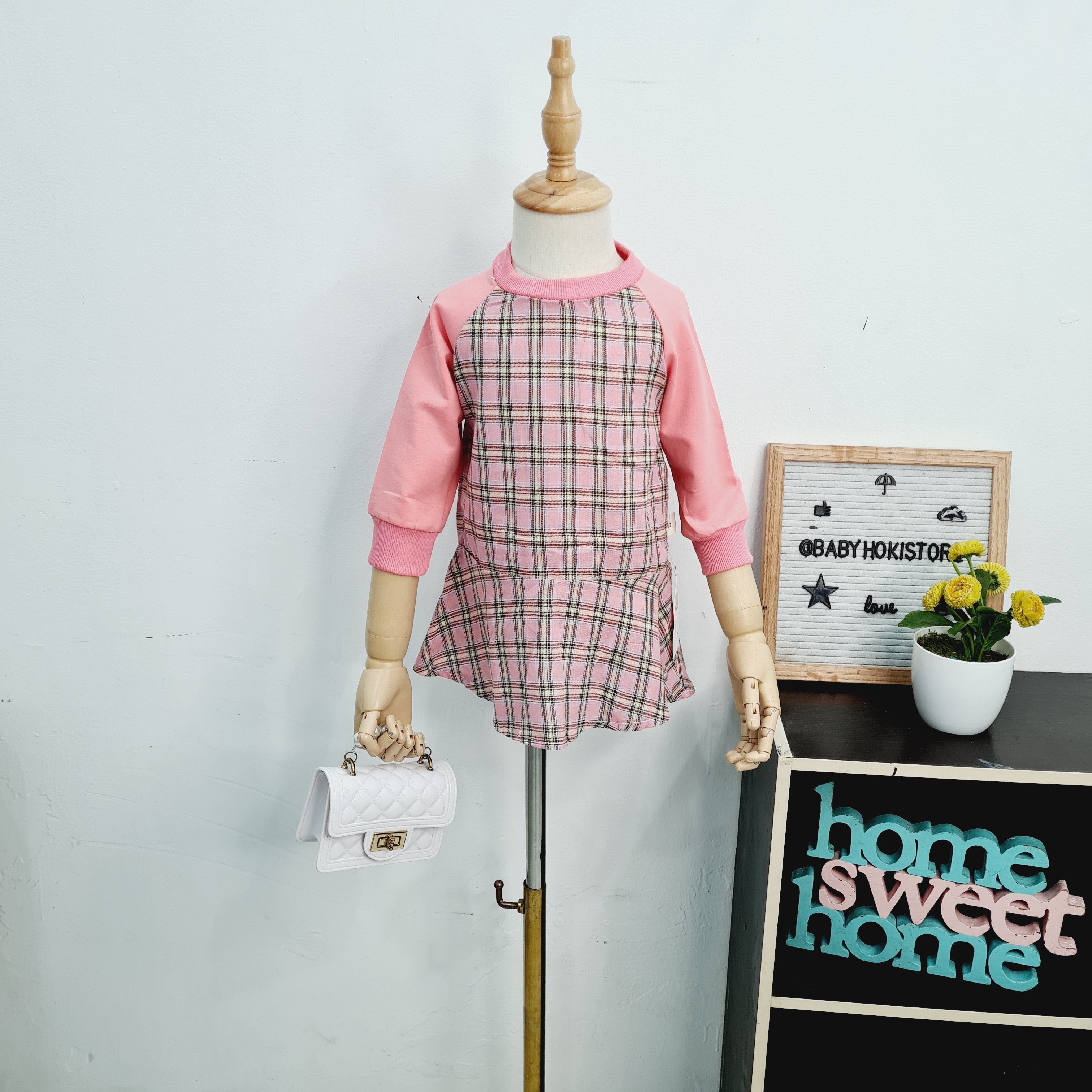 Clearance [001396] - 3D Dress Kotak-kotak Lengan Panjang Anak Perempuan - Motif Little Wings