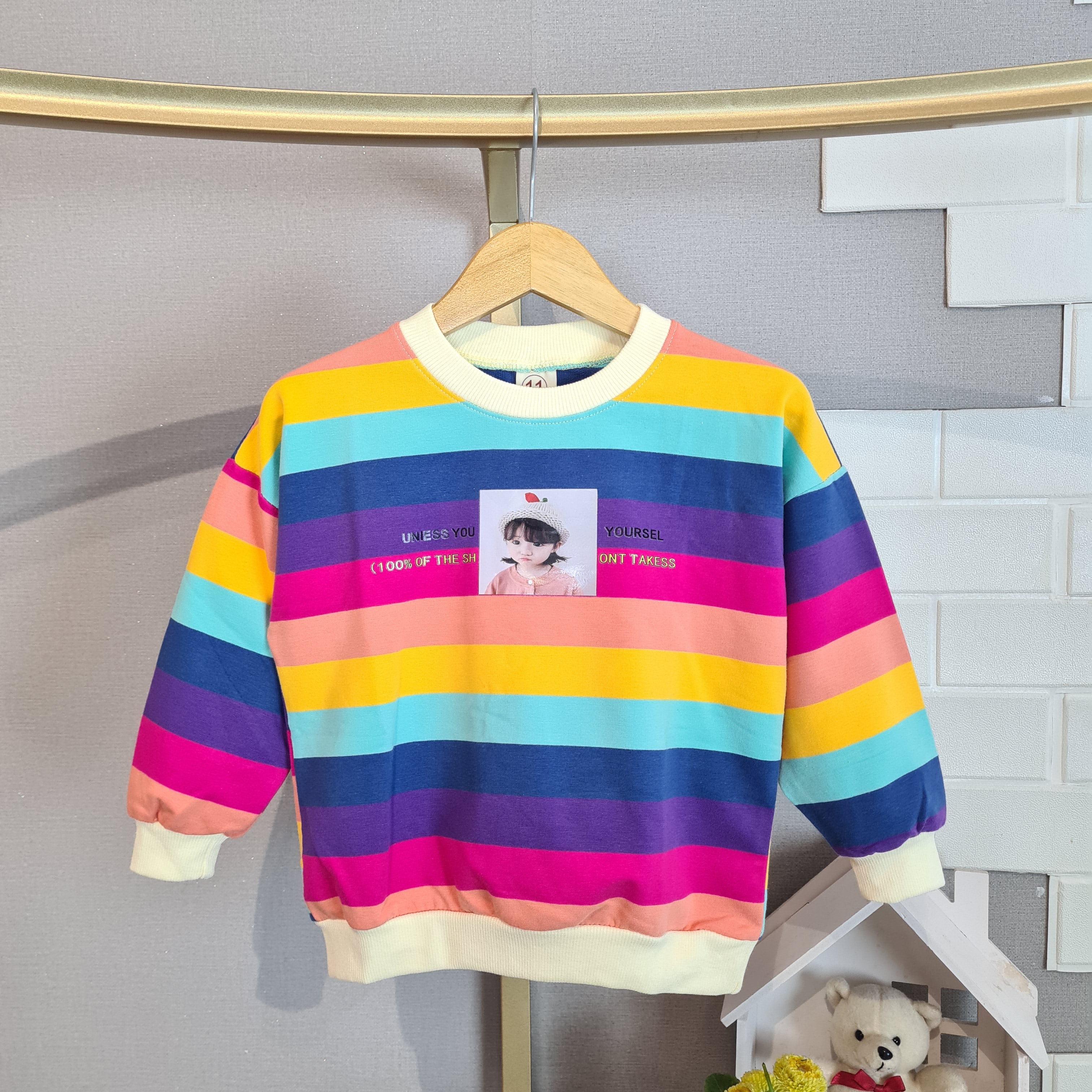 [102433] - Baju Atasan Sweater Fashion Anak Perempuan - Motif Color Line