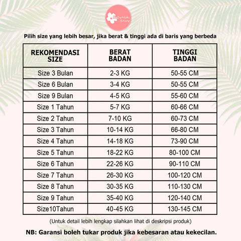 📏 Semua ukuran sudah kami uji di banyak anak, jadi ukuran lebih akurat dan bisa jadi panduan terpercaya para mama kece se-Indonesia!