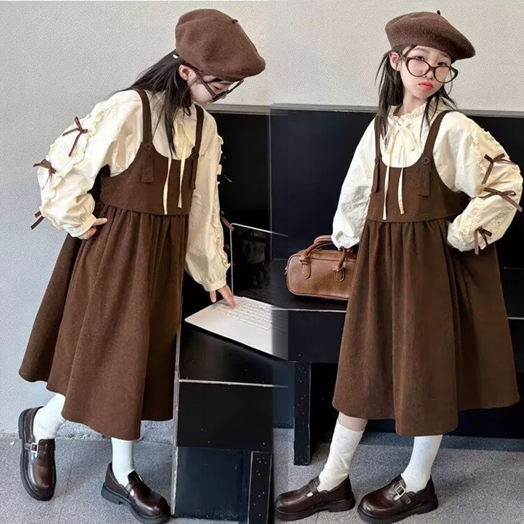 [5071180] - One Set 2in1 Baju Setelan Dress Atasan Lengan Panjang Korean Version Style Anak Perempuan Cewek - Motif Collar With Ribbon - BABYHOKI STORE