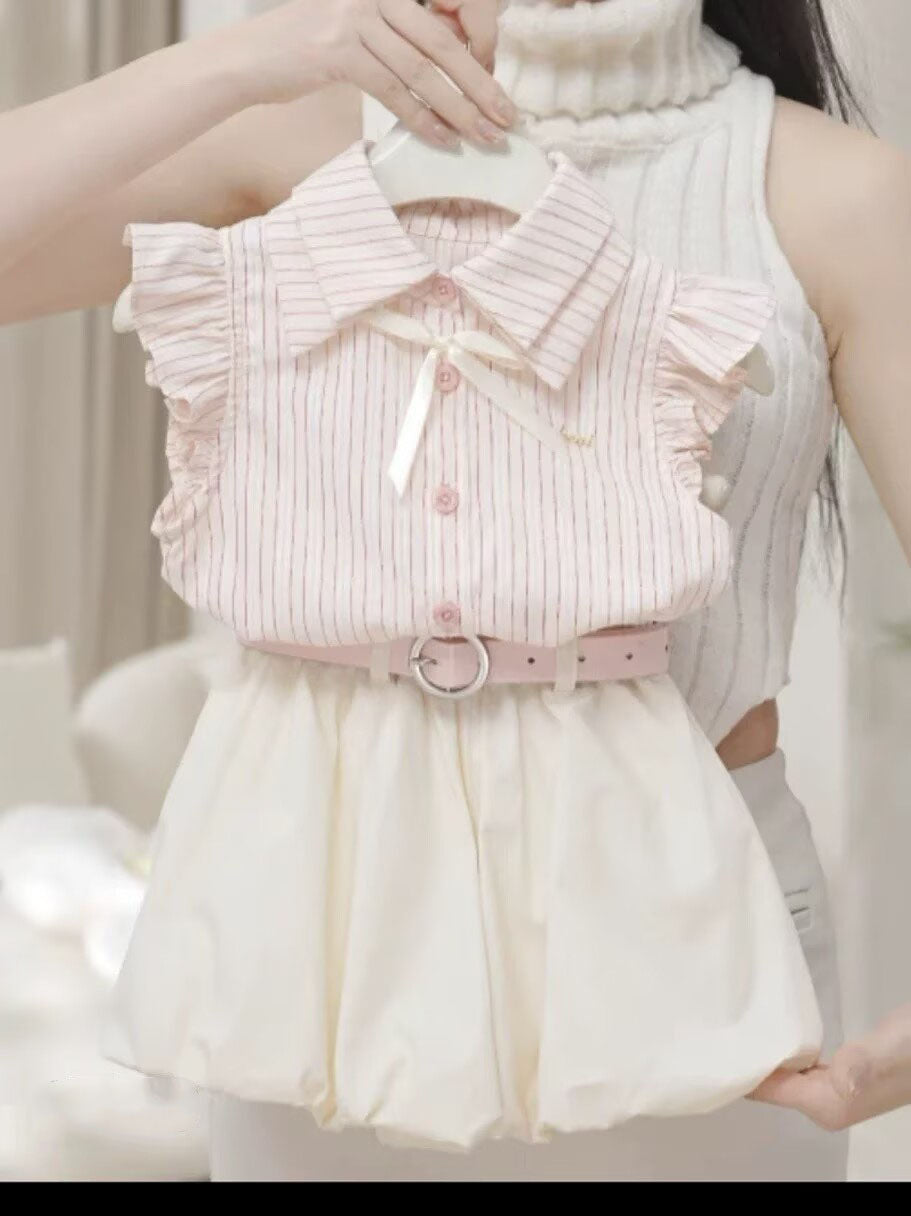 [5071176] - One Set 2in1 Baju Setelan Atasan Knit Kerah Lengan Kutung Bawahan Rok Pendek Comfort Fashion Style Anak Perempuan Cewek - Motif Cute Ribbon - BABYHOKI STORE